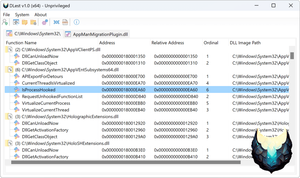 Oltre alla possibilità di analizzare file PE archiviati su disco, DLest consente anche l’analisi dei moduli caricati in memoria nonché la manipolazione in tempo reale delle funzioni esportate, rendendolo uno strumento prezioso per attività di Reverse engineering o durante le fasi di Incident Response. Puoi persino eseguire il dump di una versione ricostruita di qualsiasi modulo per future analisi o riutilizzi di vario tipo.