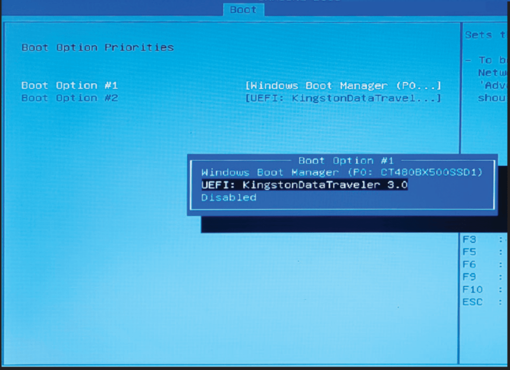 Tenendo presente che con la licenza commerciale, per accedere, non si ha necessità di disabilitare alcunché, descriverò adesso la mia esperienza con la licenza personale: occorre inserire la chiavetta USB (che hai preparato in precedenza) nella porta USB del tuo target e riavviare il sistema. Accedi ora al BIOS facendo ripetutamente click su uno dei tasti (o sulla combinazione di tasti previsti dal BIOS del tuo pc/notebook/server) deputati allo scopo. Una volta entrato nel BIOS, nell’ordine d’avvio del sistema imposta al primo posto l’unità che identifica la porta USB in cui hai inserito la chiavetta, e assicurati di disabilitare il Secure Boot dalla sezione Boot. Infine, premi il tasto F10 e salva le modifiche.