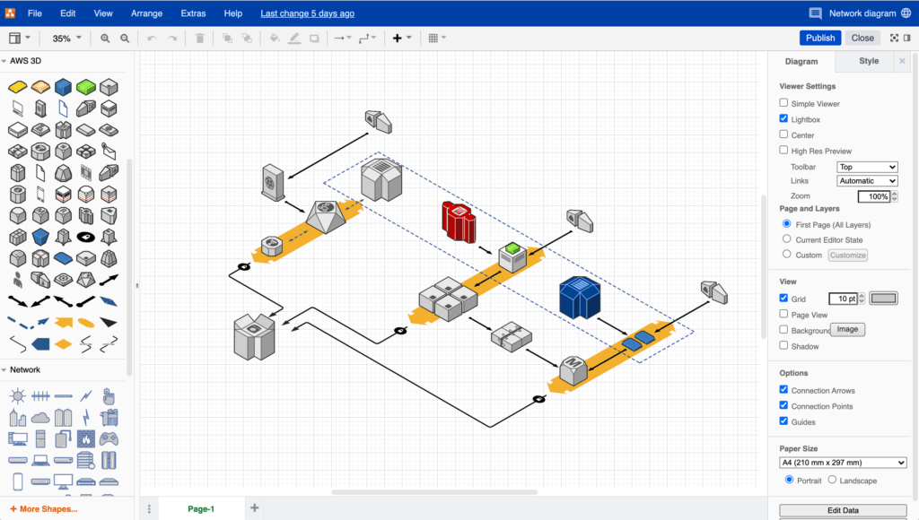 Il buon vecchio FOSS draw.io (divenuto da poco app.diagrams.net) conserva ancora il suo prestigio e la sua semplicità d’utilizzo nel 2023, continuando ad essere un valido strumento per molti progettisti ICT/OT (me compreso), valida alternativa al commerciale Microsoft Visio.