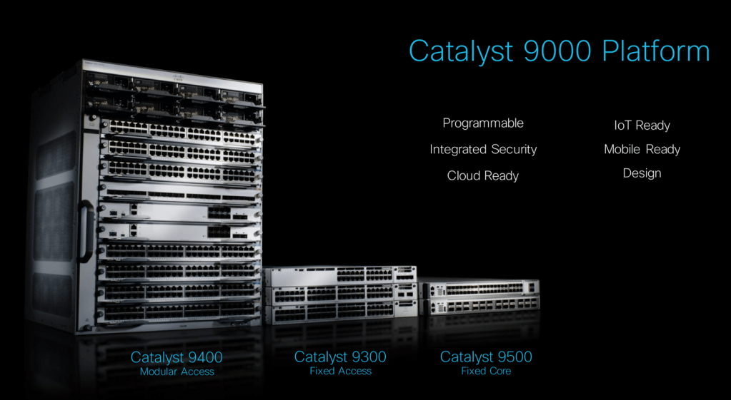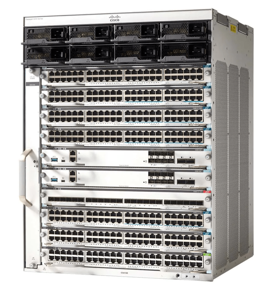 Gli switch Cisco Catalyst serie 9400 costituiscono una piattaforma modulare di accesso, distribuzione e core per la commutazione aziendale, creati per unificare la gestione della Cybersecurity, dell’IoT e del Cloud Computing: questi switch implementano un’architettura dello chassis che supporta fino a 9 Tbps di larghezza di banda del sistema, e un’erogazione di potenza con PoE IEEE 802.3bt ad alta densità (60 W e 90 W). Catalyst 9400 offre alta disponibilità (HA) attraverso la tecnologia virtuale Cisco StackWise® con l’aggiornamento software in servizio (ISSU), SSO/NSF, resilienza uplink, ridondanza N+1/N+N per gli alimentatori. La piattaforma è stata ingegnerizzata con un innovativo design del vano ventole a doppia manutenzione, flussi d’aria da lato a lato, ed è perfetta per i rack con una profondità di circa 41 cm.